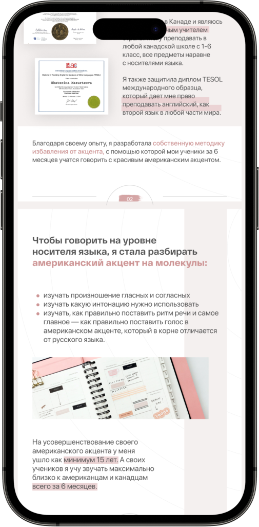 Даю видимый результат в виде чистого произношения и красивого акцента.